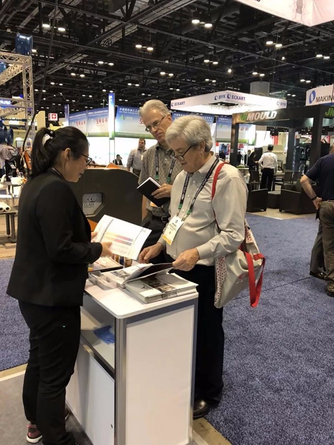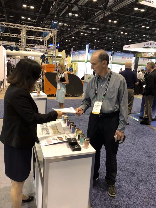 ▲ 紅梅展位上,新、老客戶紛至沓來,紅梅為此次NPE美國塑料展做了精心的準備,不僅有相關產(chǎn)品的宣傳冊書面資料,同時還有色母粒產(chǎn)品現(xiàn)場展示,讓客戶們能夠全方面的了解紅梅的母料產(chǎn)品。