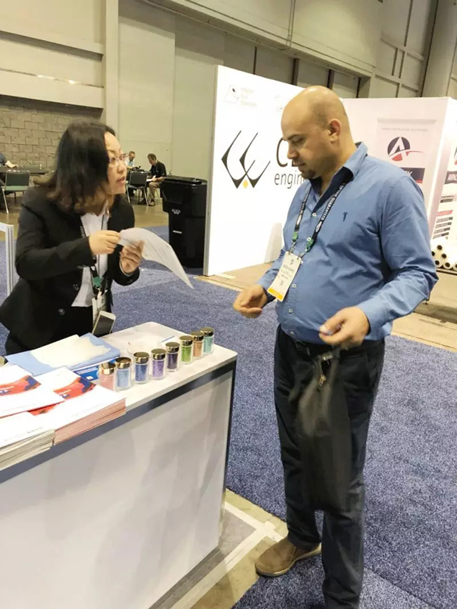 ▲ 專業(yè)熱情的紅梅人,在美國塑料展盡心為客戶解讀產(chǎn)品訊息